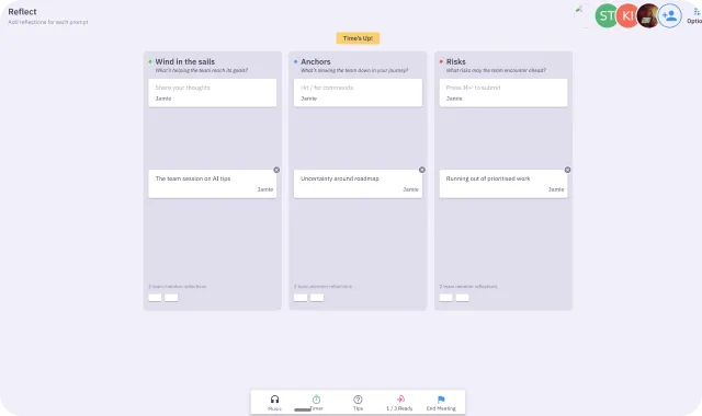 Parabol is functional. Fixed steps, gets the job done. It has lo-fi background music during the icebreaker phase and an optional icebreaker question added to the beginning of a meeting. An AI modifier that lets the facilitator adjust the icebreaker tone before the team sees it — a genuinely nice touch. But that’s about the extent of it.