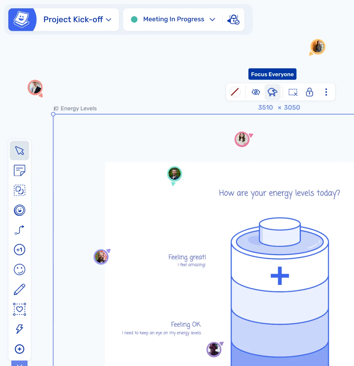 Visible timers keep the session on track, helping the facilitator manage time without constant reminders or interruptions.